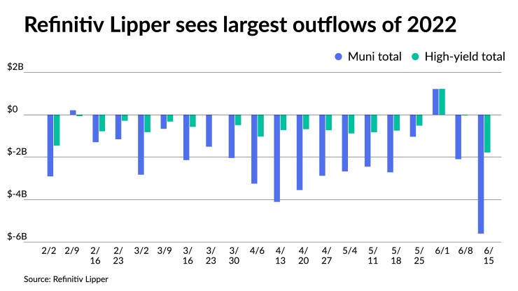 In the week ended June 15, Refinitiv Lipper reported $5.602 billion of outflows Thursday, following an outflow of $2.094 billion the previous week.
