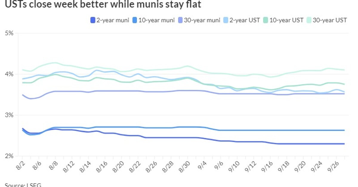 Municipal triple-A yield curves closed out the week with few changes, valuations were little changed — though at attractive levels — and the forward calendar climbs to more than $10 billion to open the fourth quarter.